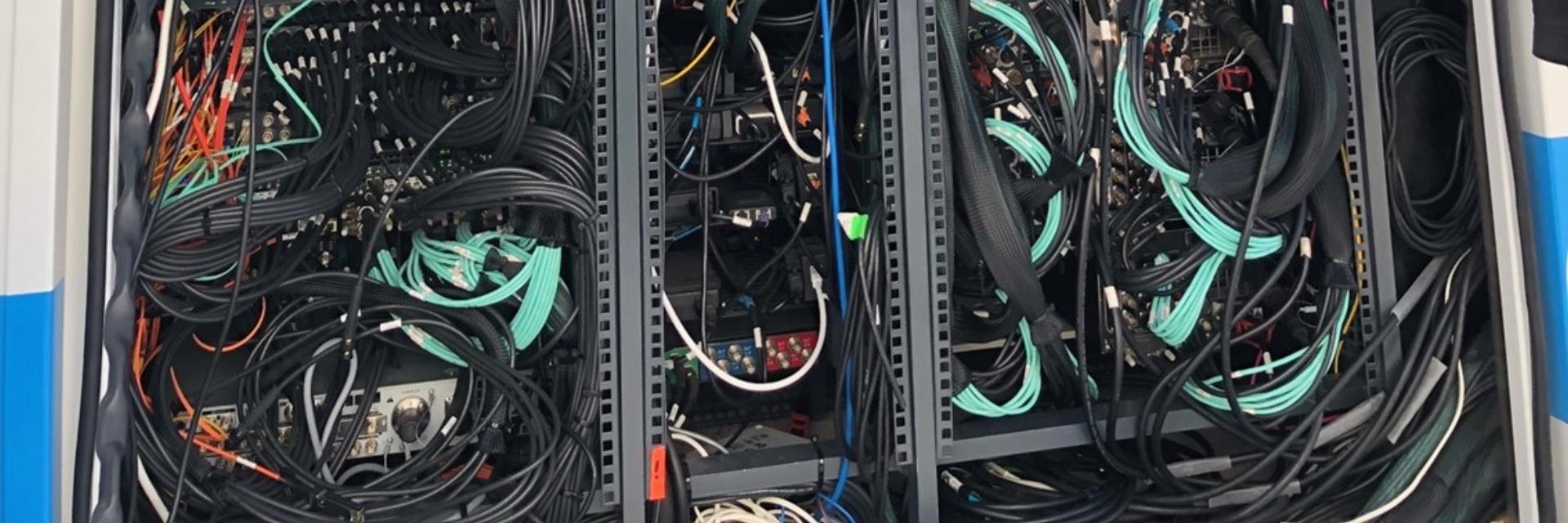 Minitech har tidligere bygget OB-vogne, hvor man har sat fx 4-5 switches op til at styre audio, video, internet mv., og det krævede, at man trak kabler mellem switchene og udstyret. Erstatter man kabler med fiber, gør det både vognen mere stabil og teknikerens liv lettere: