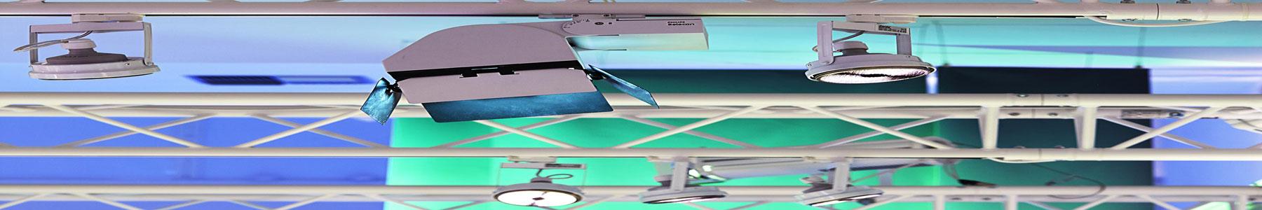 Det fanns inga redan existerande installationer i det stora vita rummet där utställningen skulle äga rum. En tom duk, så att säga. En Prolyte-trossgrid installerades därför först i taket för att stödja den mindre arsenal av armaturer som senare köptes in.