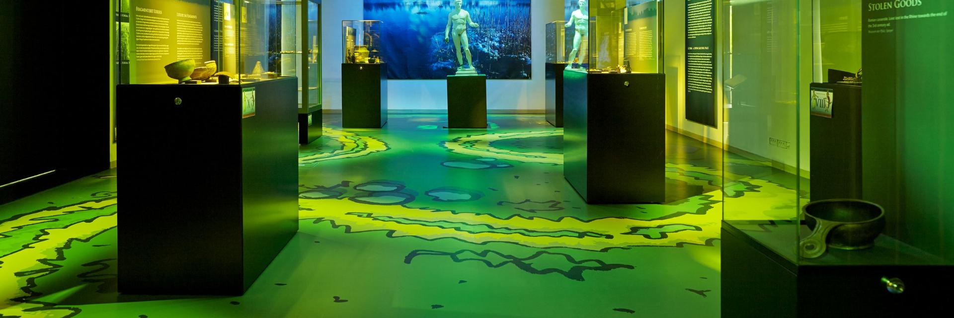 Lysdesigneren Jens Klastrup fik til opgave at sætte lyset til udstillingen ”Den Romerske forbindelse” på Møntergården i Odense. En arkæologisk udstilling, som skulle tage de besøgende med på en rejse fra oldtidens Rom til Gudme på Fyn. Et helt hvidt rum uden særlige installationer skulle lyssættes på en anderledes og dramatisk måde.