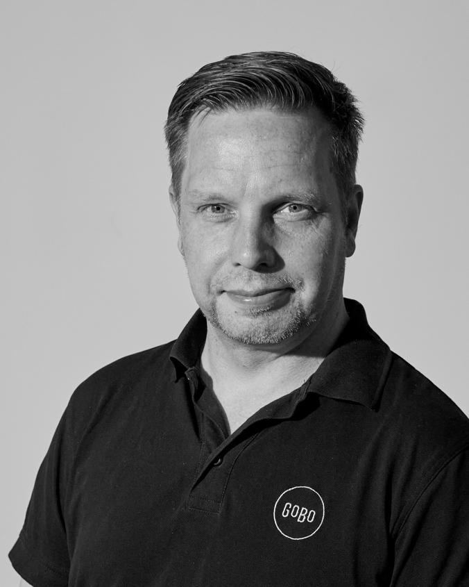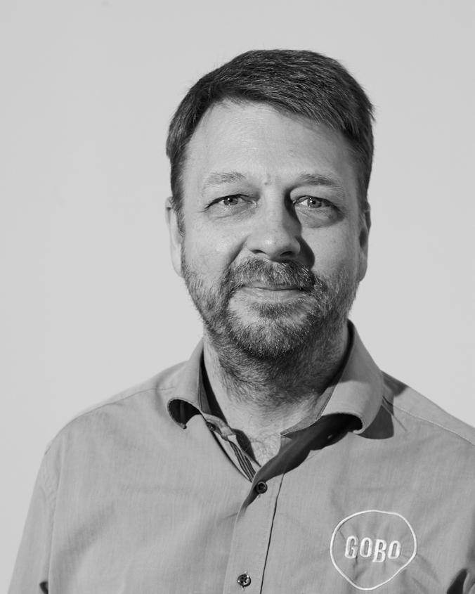 Jens Holm vastaa Gobon tuotteista ja koulutuksesta sekä sisäisesti että ulkoisesti. Hän tulee teatterimaailmasta ja on muun muassa työskennellyt 14 vuotta teknikkona ja valosuunnittelijana Århusin teatterissa.